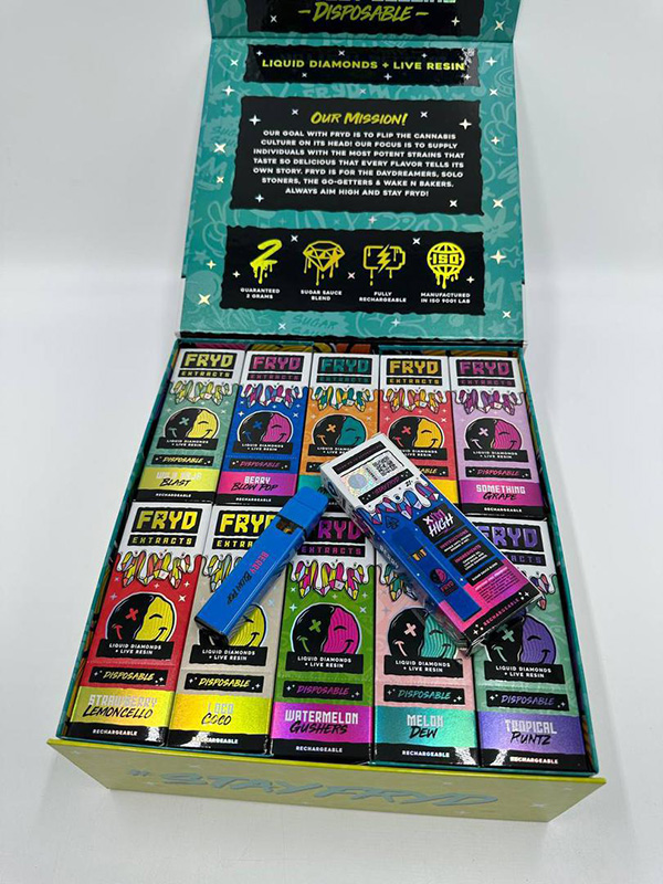 What sets Fryd Extracts apart is the flavor. The combination of live resin and liquid diamonds preserves the natural terpene profile of the cannabis strain, offering a flavorful experience with each puff. Expect a rich, aromatic taste that can range from sweet, fruity, and citrusy to earthy and spicy, depending on the strain. The live resin enhances the flavor, giving it a complex, full-bodied taste that’s hard to match.