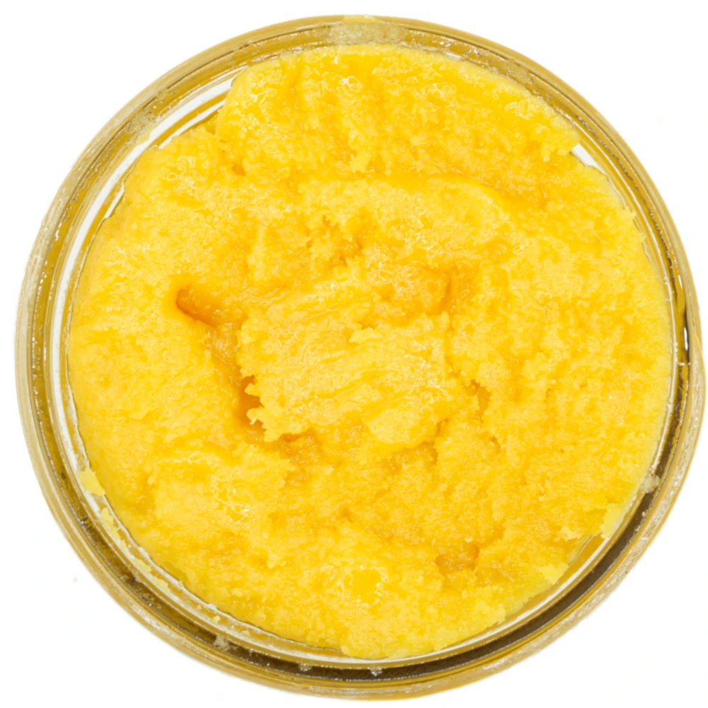 The concentrate typically has a golden amber or light honey-like hue with a glossy, semi-transparent texture. Its consistency can range from a saucy liquid to a thicker, more crystalline structure, depending on the extraction process.
